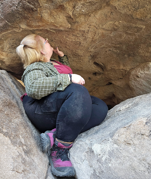 Looking at the pictographs in Hueco Tanks.