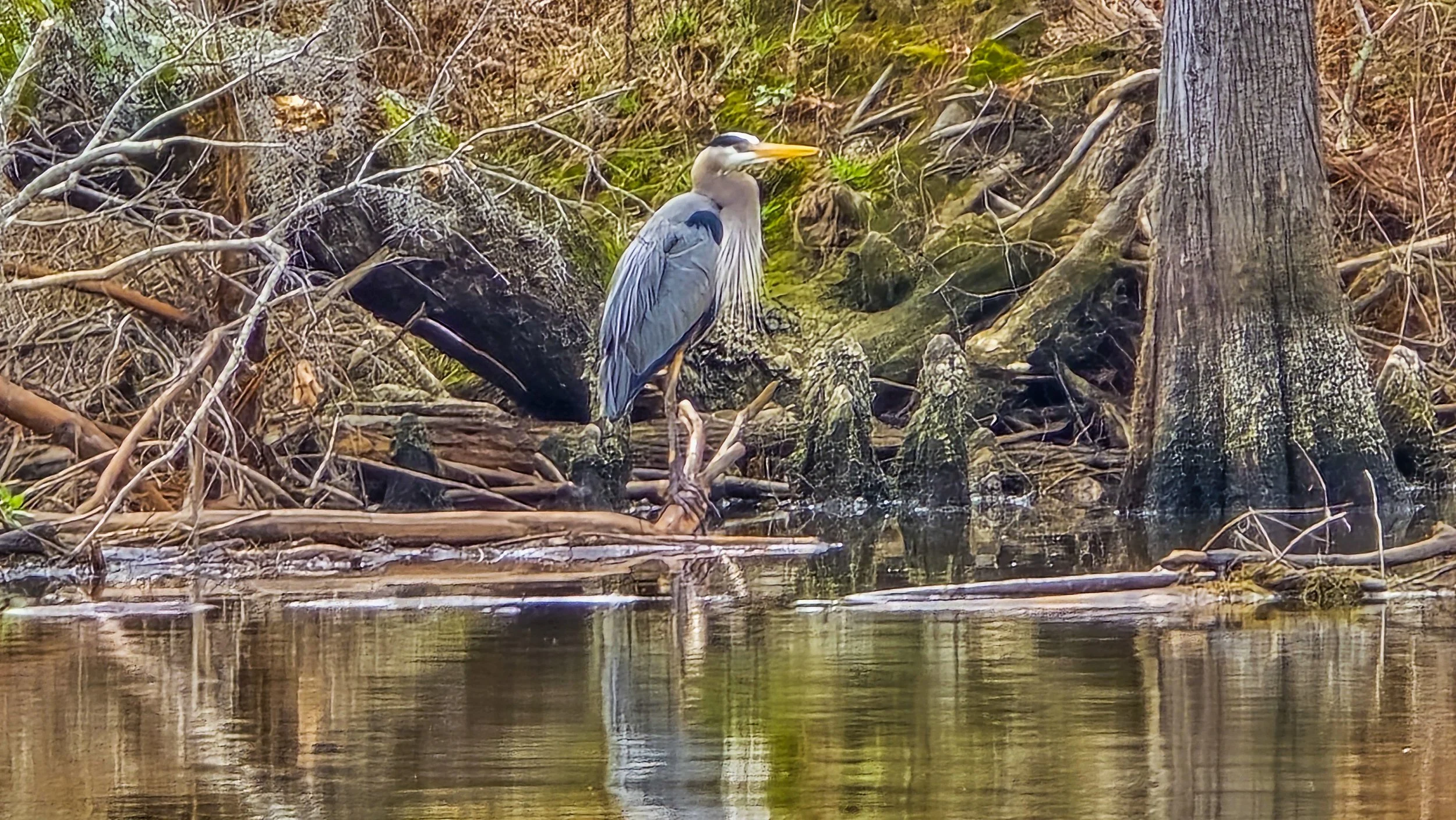 Caddo Lake is a maze of Bald Cypress trees and marshy areas, perfect for exploring by canoe or kayak! We rented a canoe from the park and spent an afternoon meandering around. We saw plenty of waterfowl, including a beautiful Great Blue Heron that decided to pose for us.