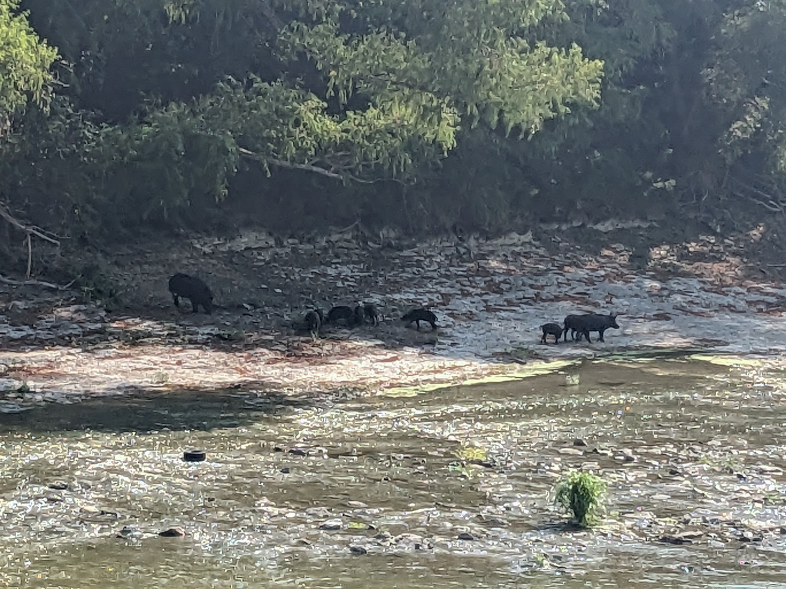 And, of course, the hogs— while admiring the Trinity, we noticed a pretty large group of feral hogs across the river. Of course, we know they are invasive and a nuisance, but they were still sorta neat to see.