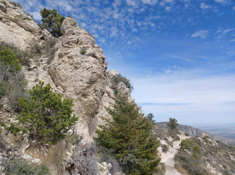 Continuing up the rocky, steep switchbacks for what seemed like forever, I took some time to enjoy the views. You can look down off the trail and see El Capitan, which is one of the park's next most popular sites, from above. To the East, the landscape turns to the West Texas we all know: completely flat. But to the West, the Guadalupe Mountain range stands tall.