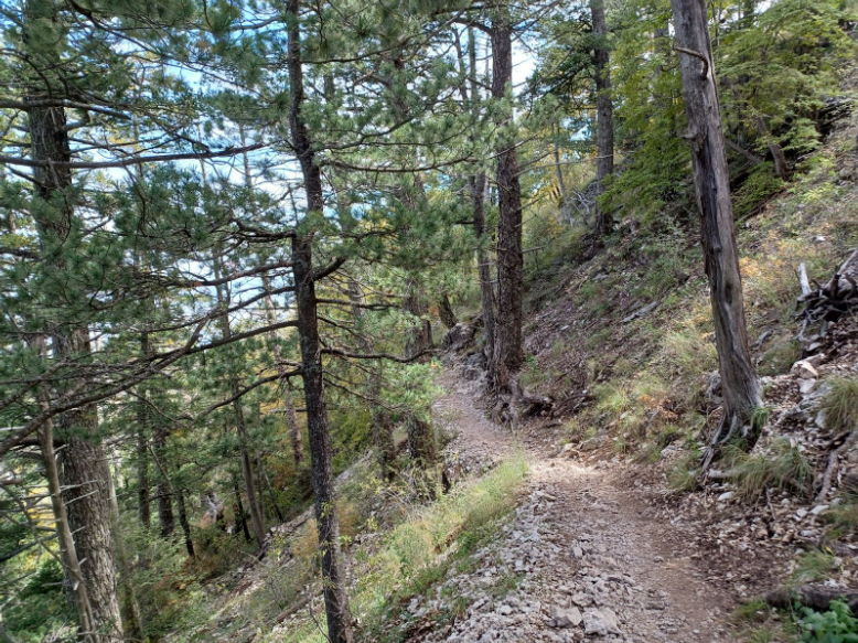 The next two miles, though still very much uphill, at some points reaching a 28% grade incline, were a breeze compared to the start of the trail. Though the trail remains relatively rocky, because it is such a well traveled trail and the dirt and rocks are so packed in, I didn’t have any fear of slipping on loose rocks. Eventually trees surrounding me had become taller and greener than short brushy bushes, and the breeze started to pick up. The trail does get narrow, so if hiking with a group, single file lines would be necessary.