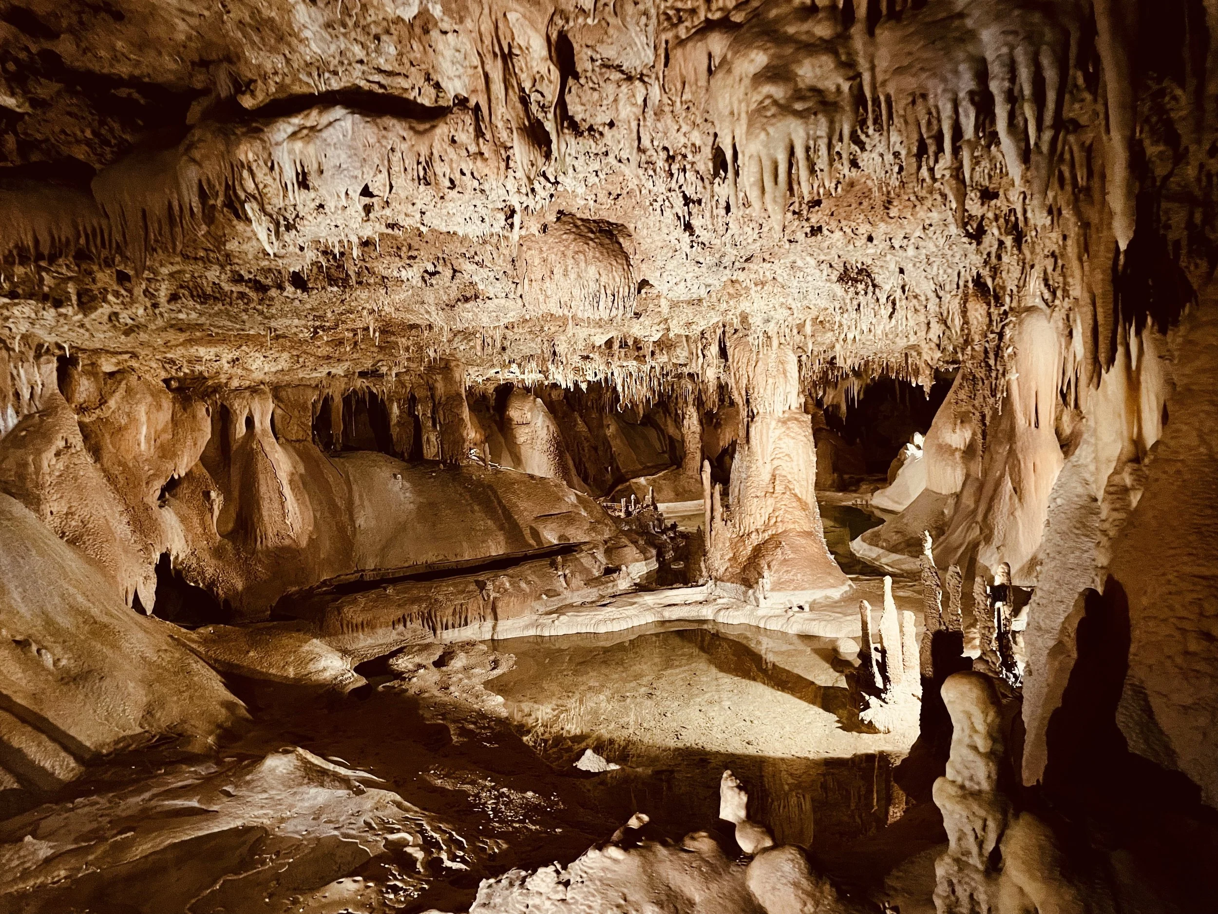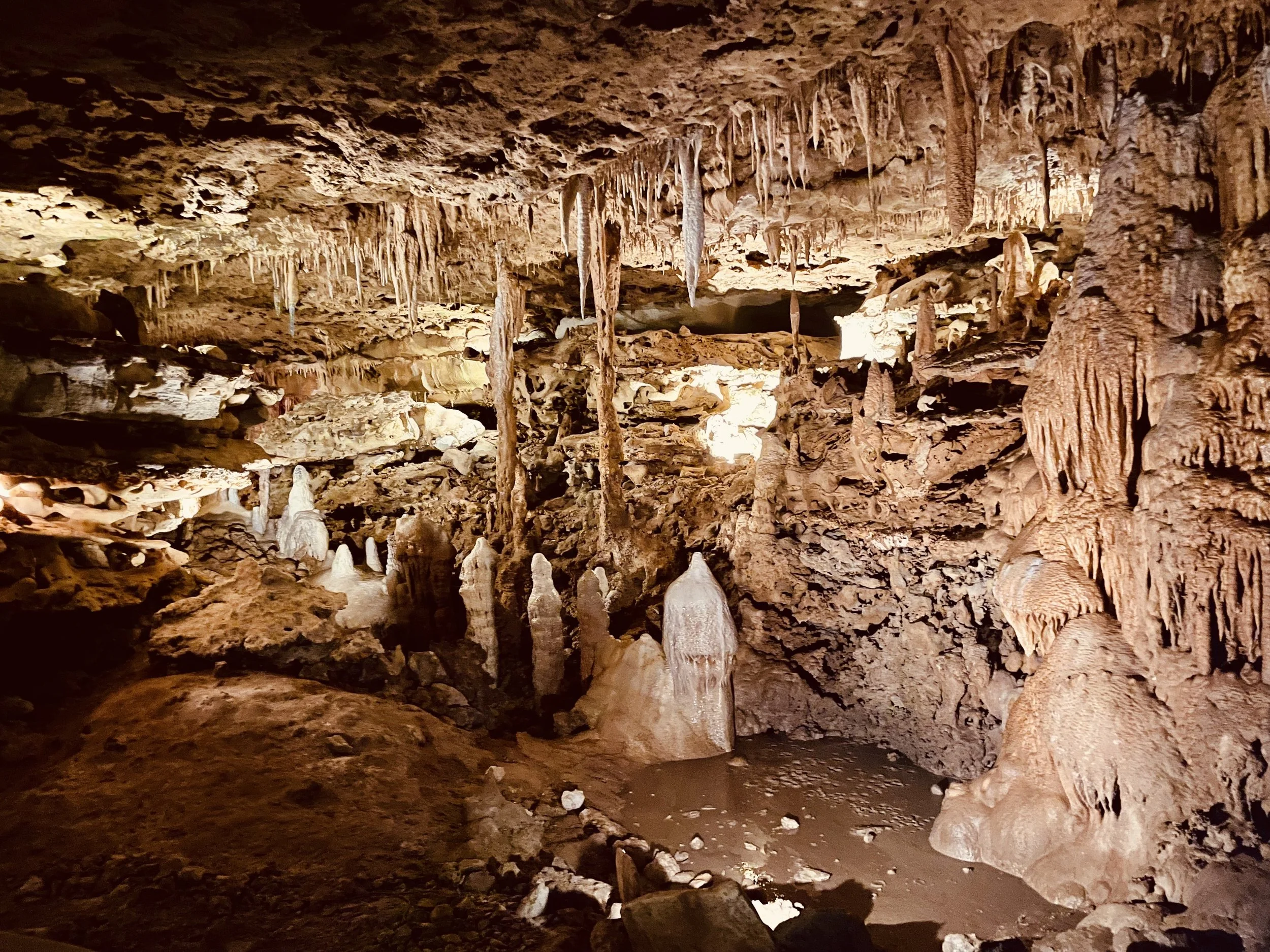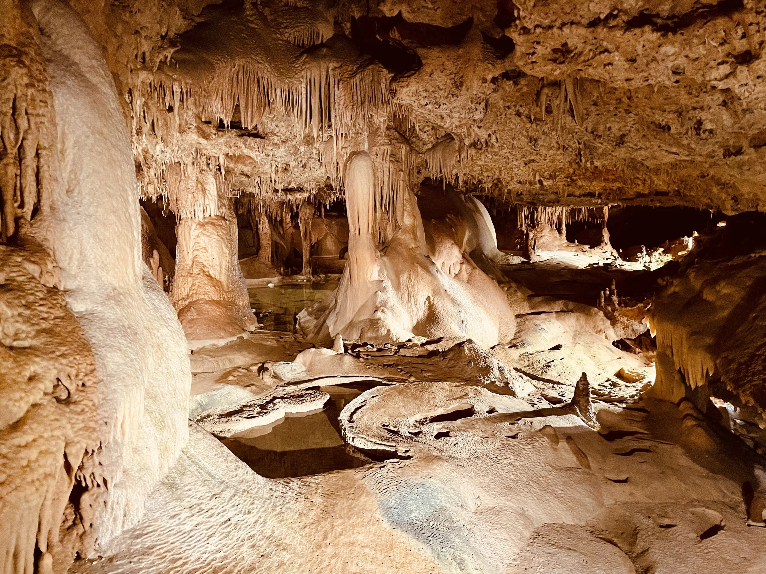 Our guide was knowledgeable, sharing the history of the cave and explaining its unique formations. The temperature inside remains a steady 72°F, but with the high humidity, it felt closer to 80°F—a comfortable warmth that adds to the atmosphere of the space. Over the one-hour journey, we saw impressive formations including domes, towering columns, and beautiful displays of stalactites and stalagmites, each one formed over thousands of years by the steady work of water and minerals.